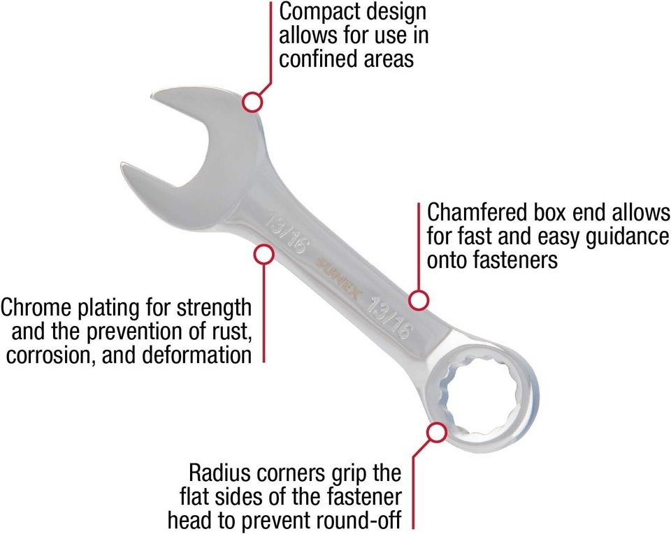 Chamfered Box End: Facilitates fast and easy guidance onto fasteners, enhancing efficiency during work.
