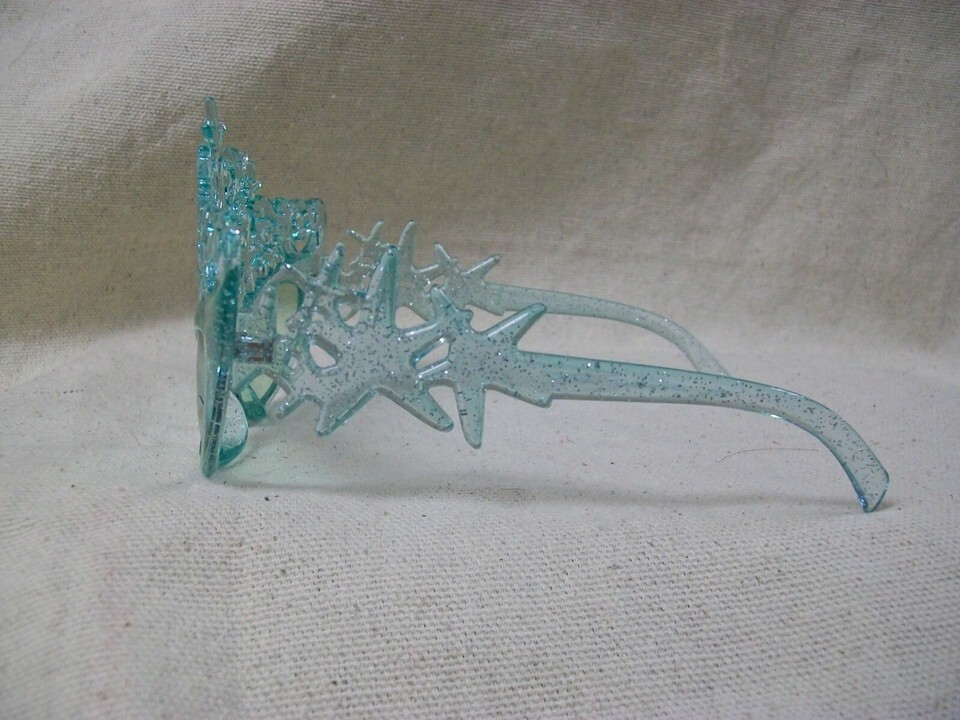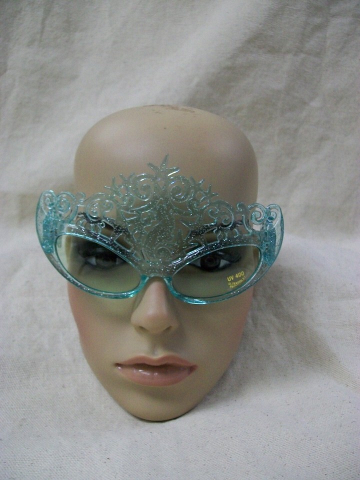 Plastic Costume Party Sunglasses. Adult: One size fits most. Novelty Sunglasses for cosmetic use. Does not provide any vision correction or sun protection. Add to Costumes such as: Mermaid, Sea Queen, Merman, etc.