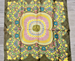 - Fun Women's Scarf Retro Floral & Heart Design Brown Background Pink Yellow Blues