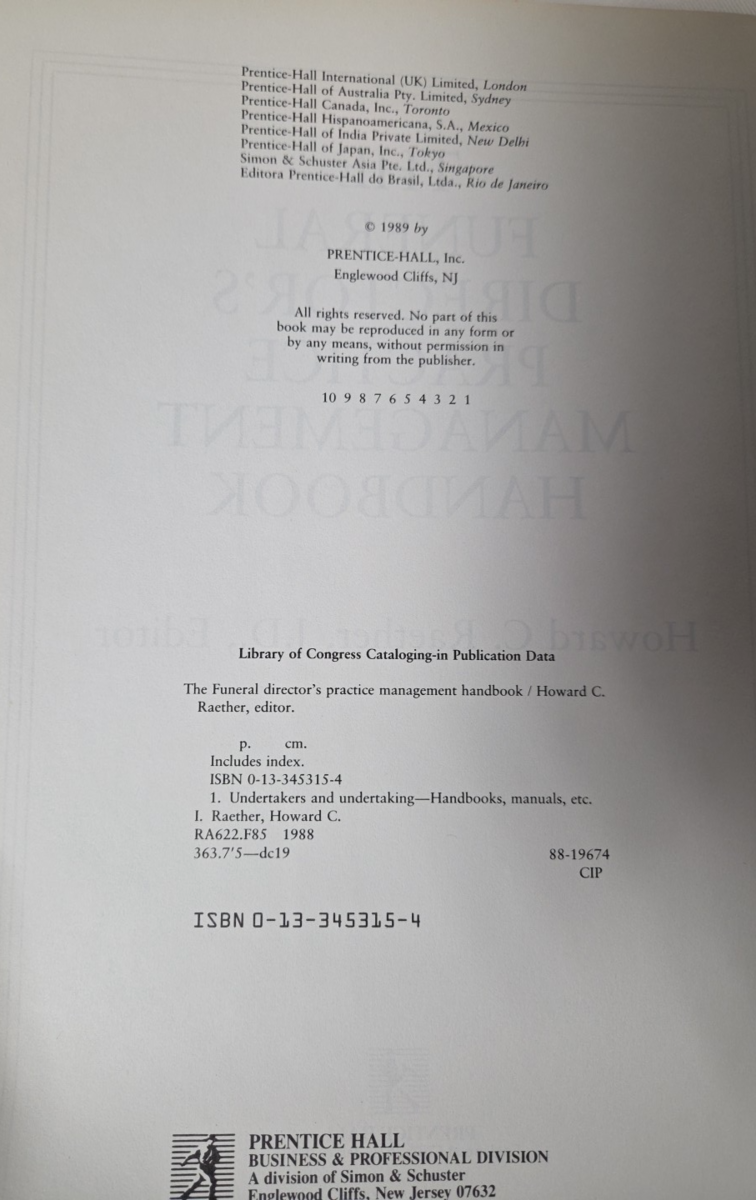 - Funeral Directors Practice Management Handbook RAETHER 1989 FREE US SHIPPING