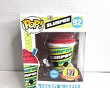 This stylized Funko Pop! figure features the iconic Slurpee mascot from 7-Eleven, complete with its distinctive cap and a slushy drink in hand. The collectible perfectly captures the nostalgic brand mascot in a classic, vibrant pose.