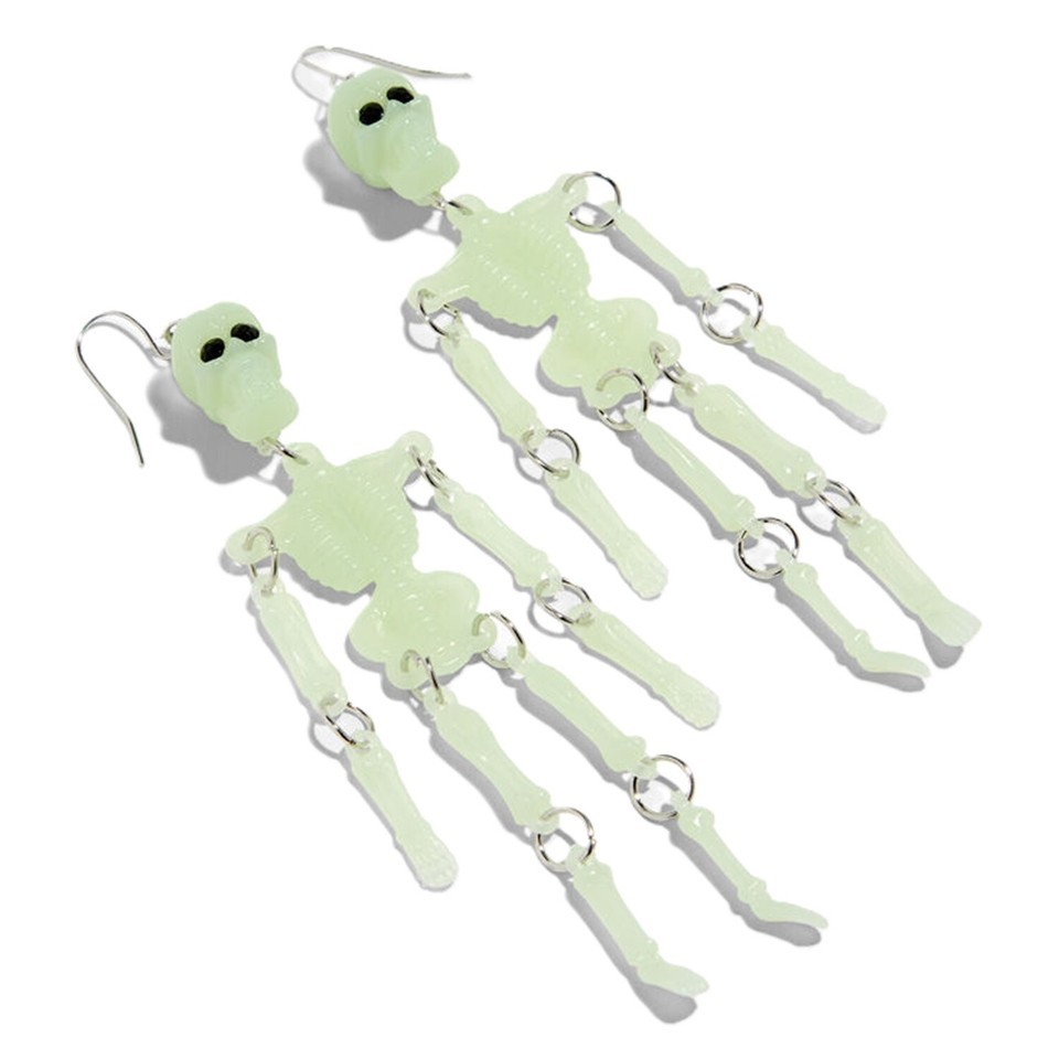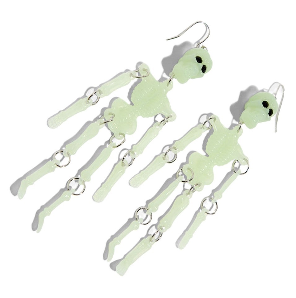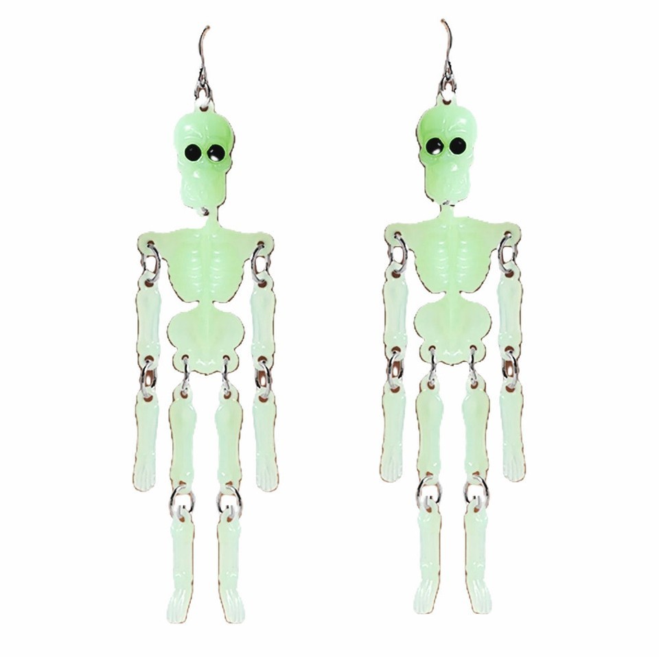 - Funky Jointed GLOW-in-the-DARK SKELETON 4.75-in DROP EARRINGS Halloween Costume