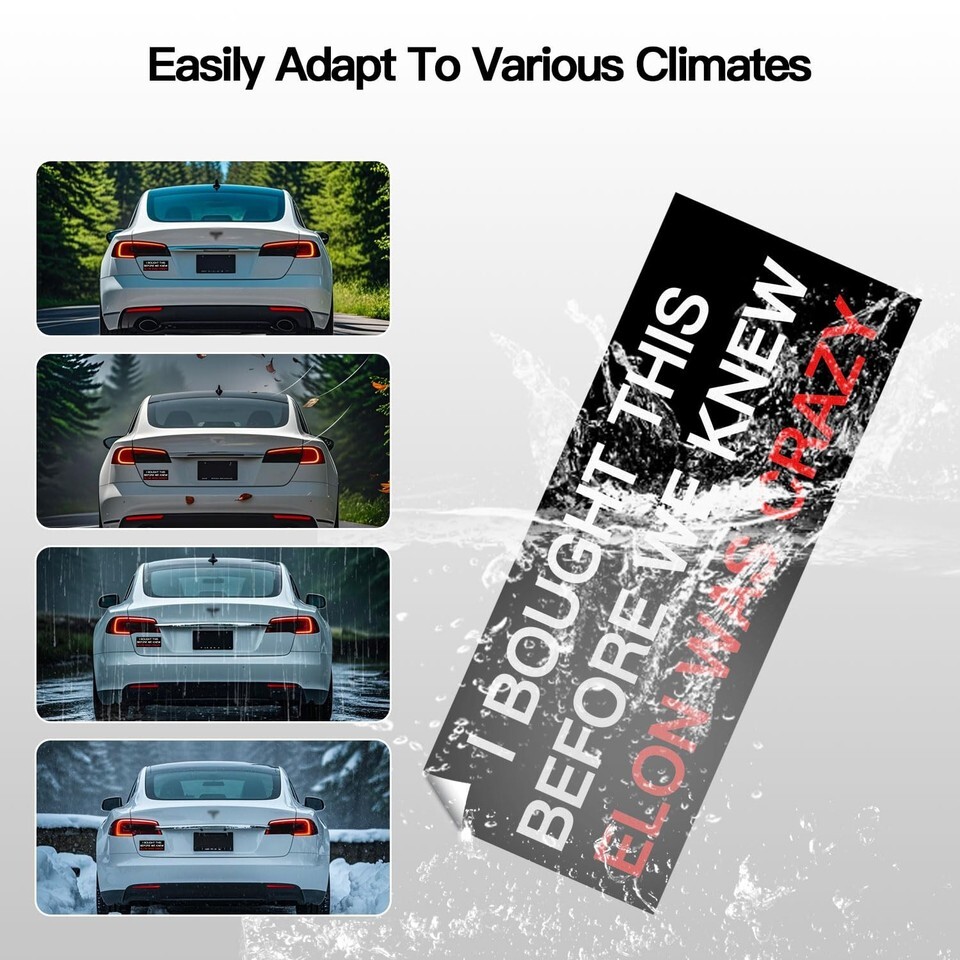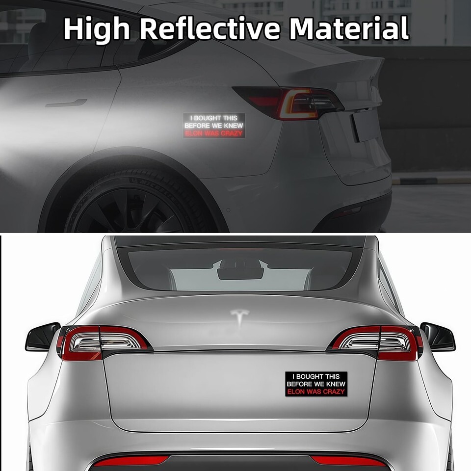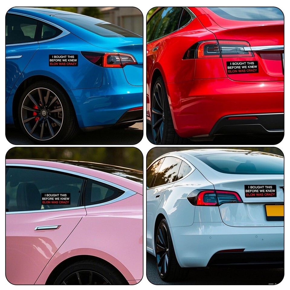 Large 7.5"3" Tesla Bumper Sticker Anti ElonOptimized for bold visibility on Tesla bumpers, laptops, and water bottles. Features "I bought this before we knew Elon was crazy" messaging, anti Elon Tesla club branding, and Tesla sticker I bought before humor. Fits flat or curved surfaces effortlessly.