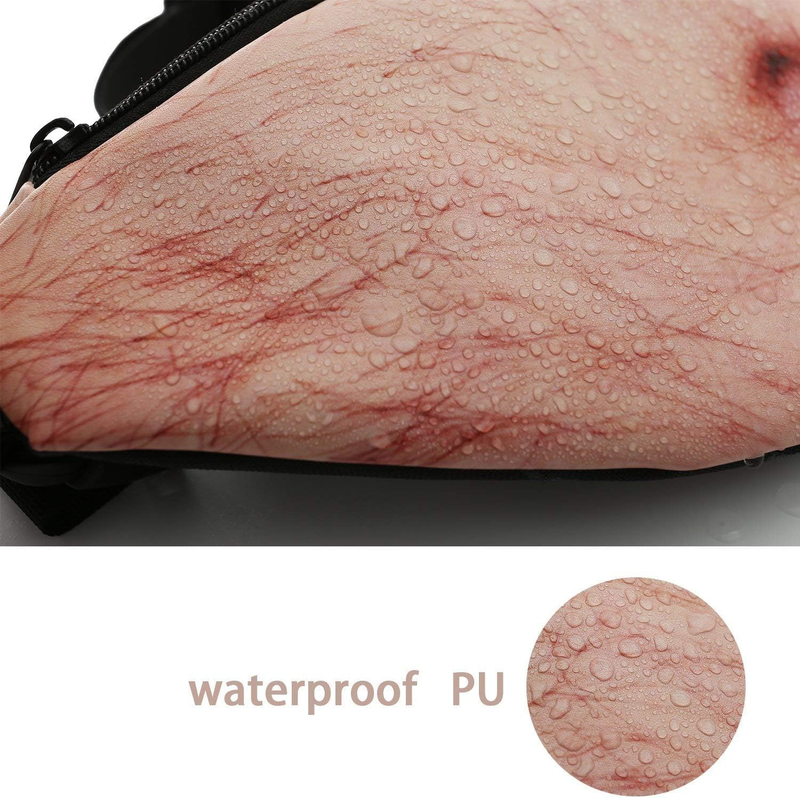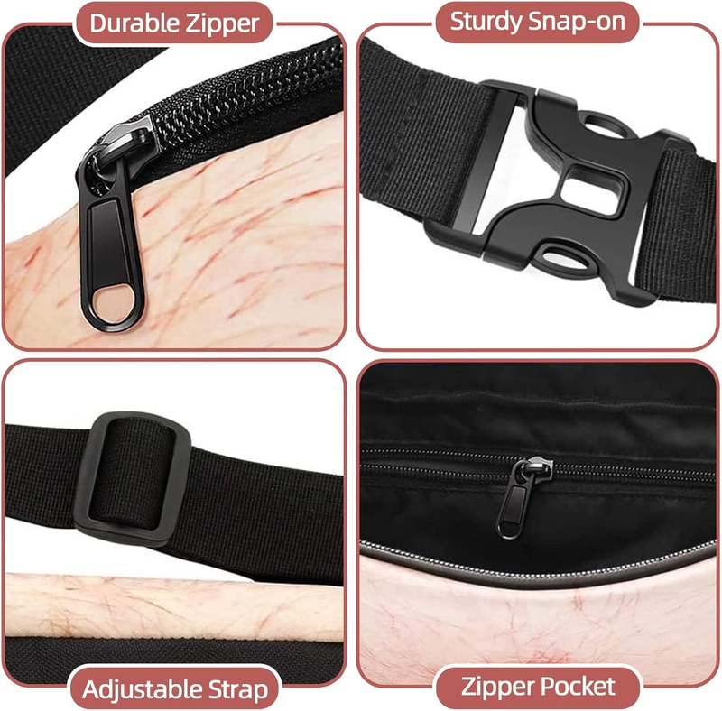 Premium Material: PU + Canvas funny pack includes 1 funny waist bag (size:13.7*6inches/35*15cm), The material is water-resistant, dirt repellent, anti-knock. Note: Not completely waterproof, if you put the hairy belly funny pack into water, our fanny bag still will be wet