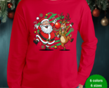 Celebrate the season with this fun Dancing Santa and Rudolph Christmas shirt! Featuring a cheerful design of Santa and his reindeer buddy dancing amid festive swirls and bells, this tee spreads instant holiday joy. Perfect for Christmas parties, family photos, or casual wear, it?s soft, comfortable, and available in six colors and sizes for a perfect unisex fit.