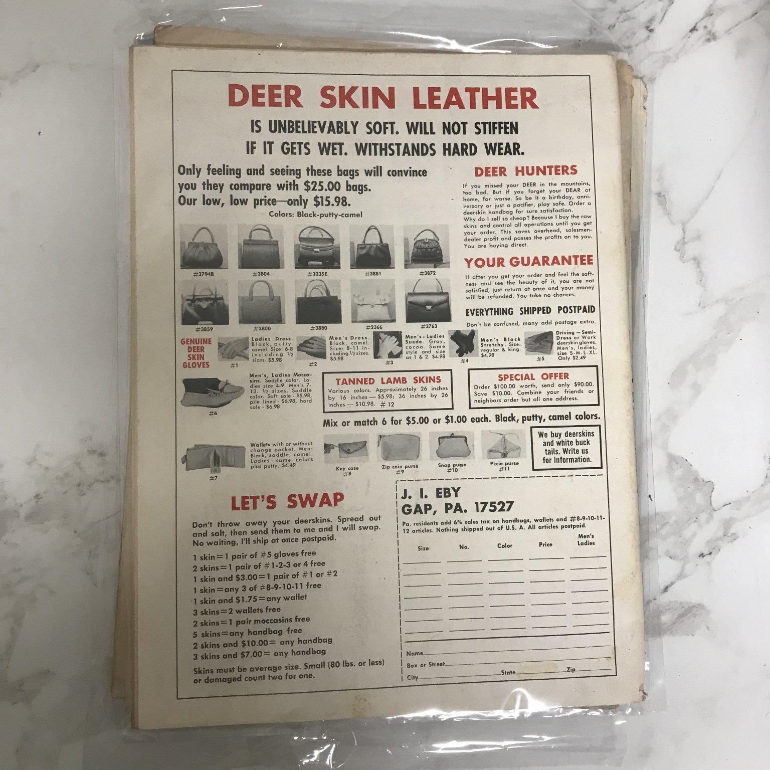 Measuring approximately magazine size with a staple-bound paper cover, this issue presents a variety of hunting topics and outdoor adventure tips relevant to the 1970s. The back cover includes vintage advertising for deer skin leather goods, reflecting the era's outdoor lifestyle. This original print magazine offers historical insights into hunting culture and is ideal for collectors of sporting magazines, outdoor periodicals, and vintage wildlife publications.