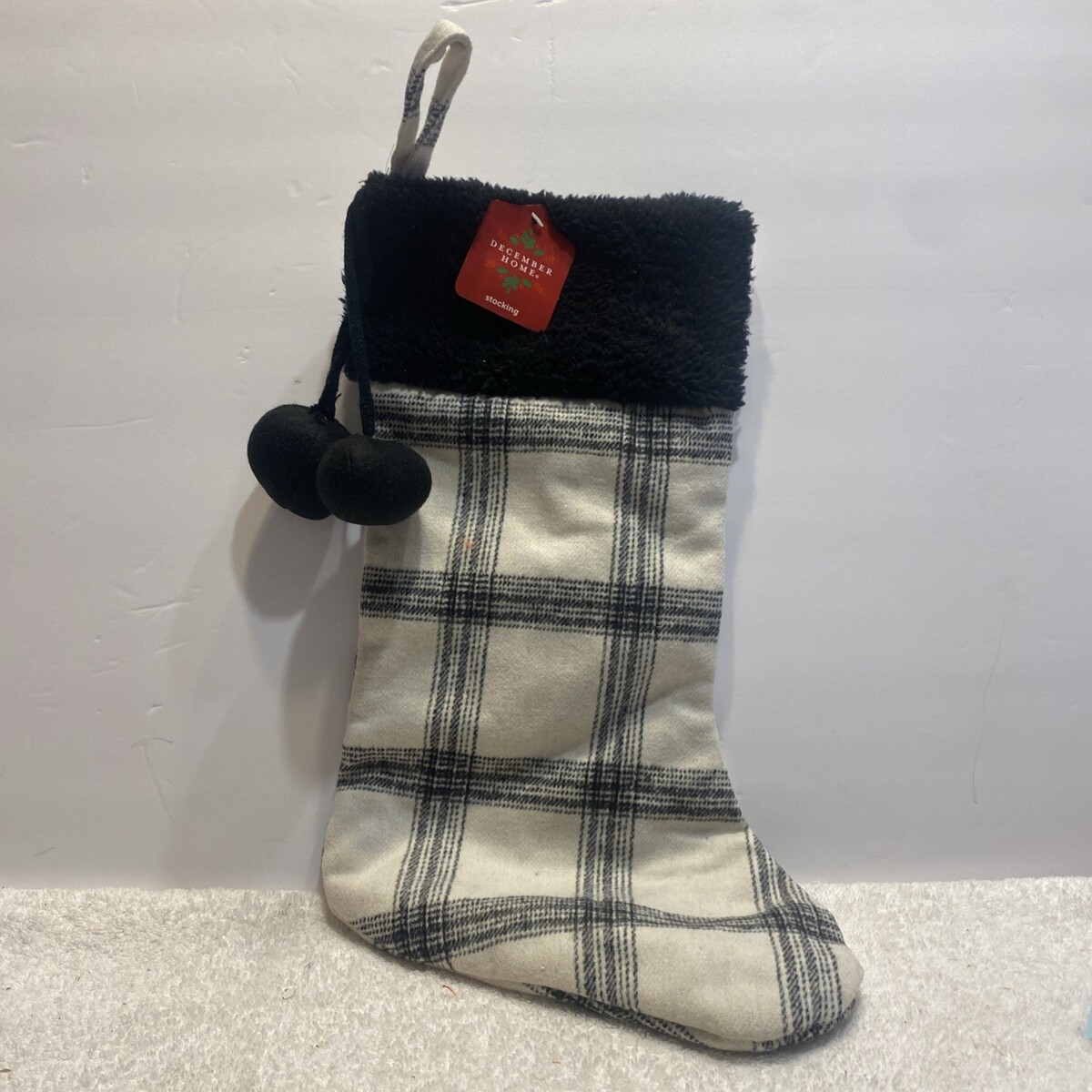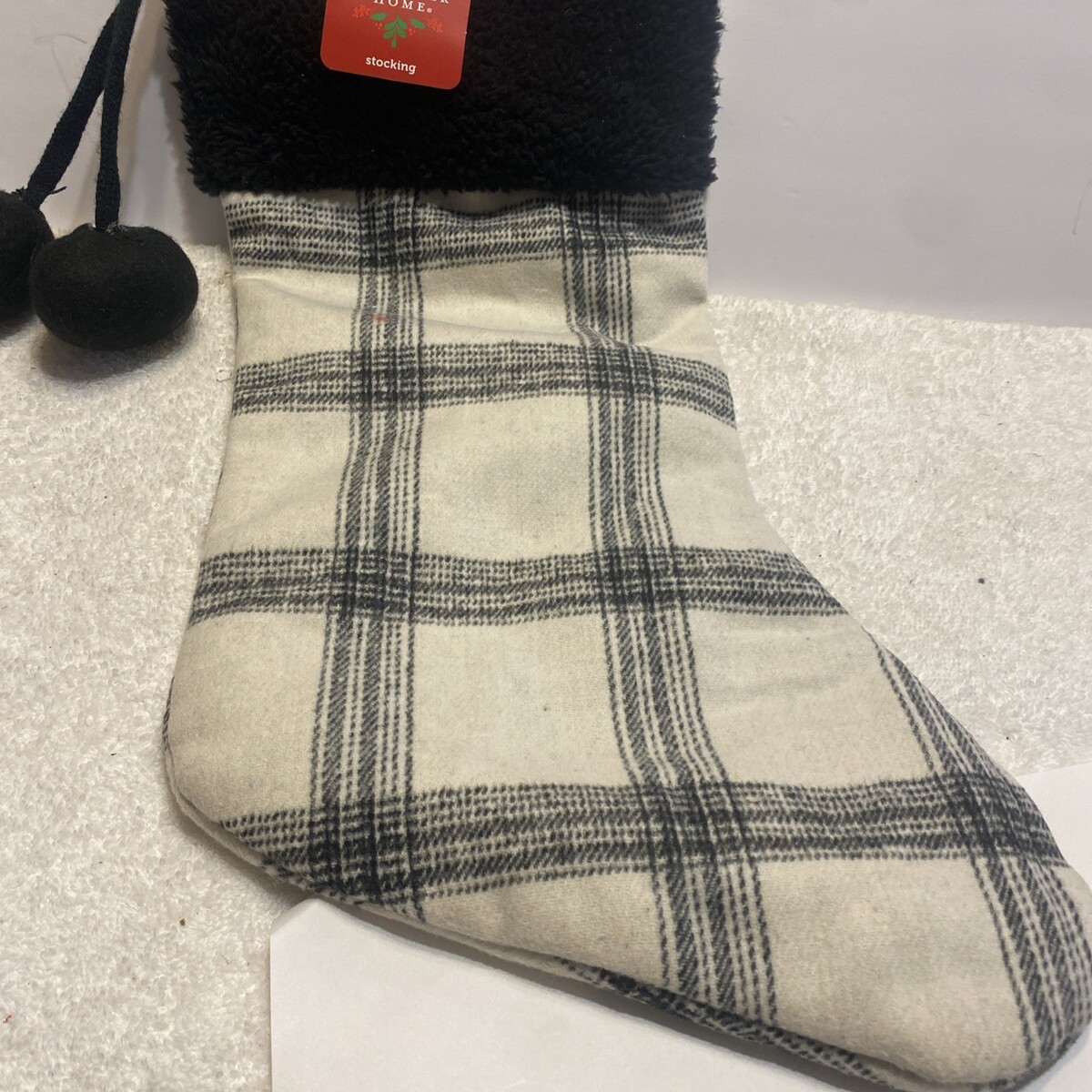 - Fur White & Black Plaid Cozy 20 in. Christmas Gift Stocking (SHIPS IN 24 HOURS)
