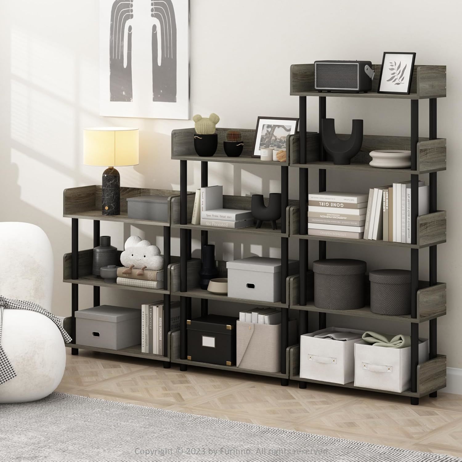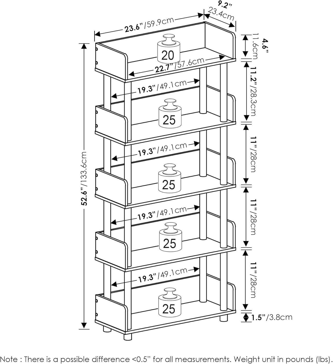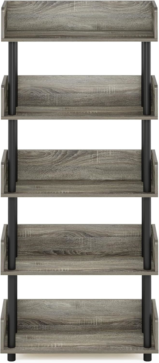 - Furinno Turn-N-Tube 5-Tier Toolless Display Rack, French Oak/Black