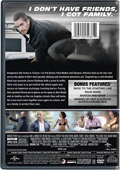 Vin Diesel, Paul Walker and Dwayne Johnson lead the returning cast across the globe in their most gravity-defying and emotional adventure yet. Targeted by a cold-blooded black ops assassin with a score to settle (Jason Statham), their only hope is to get behind the wheel again and secure an ingenious prototype tracking device. Facing their greatest threat yet in places as far away as Abu Dhabi and as familiar as the Los Angeles streets they call home, the crew must come together once again as a team, and as a family, to protect their own.