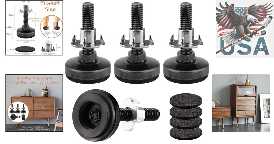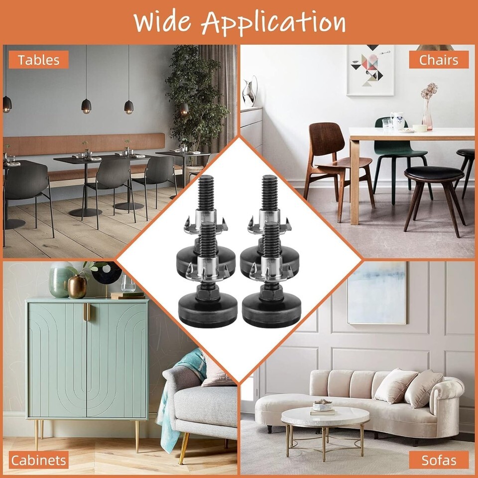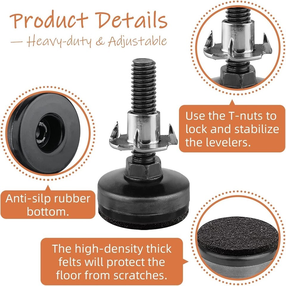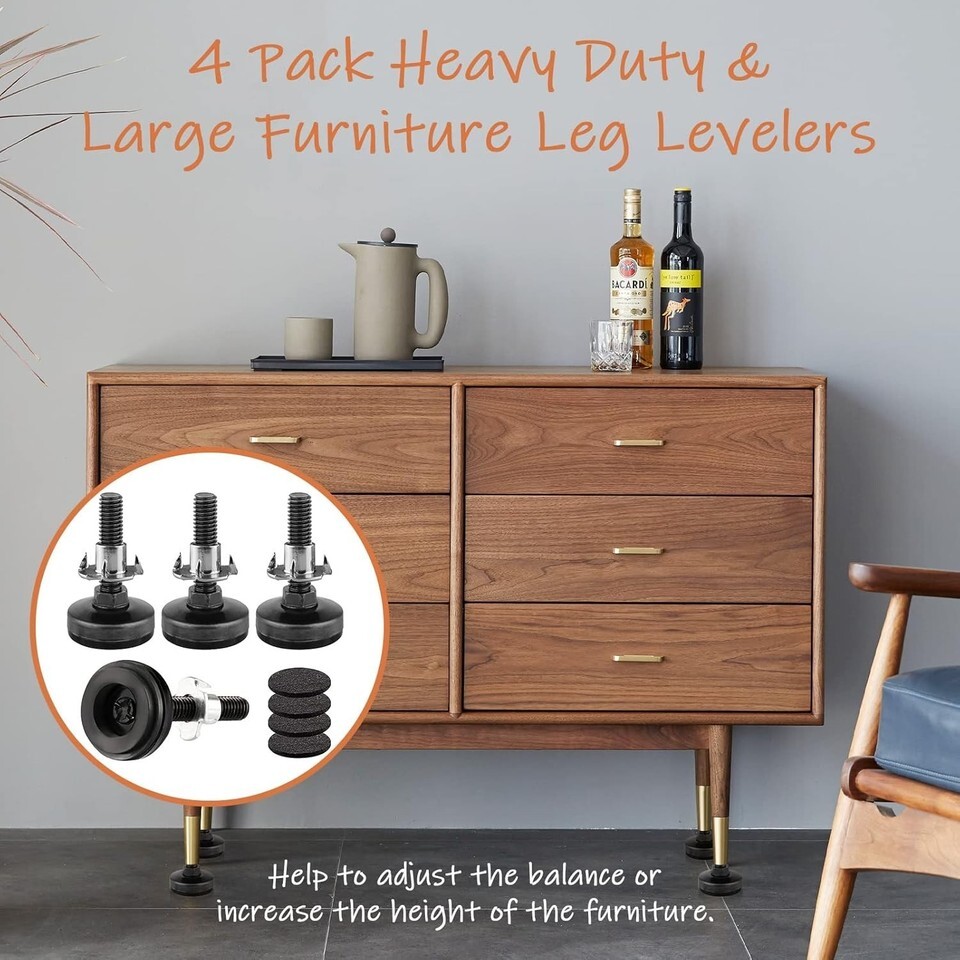 - Furniture Levelers with Felt Pads - Heavy Duty Adjustable Support, 4 Pack Black