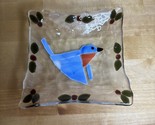 - Fused Art Glass Blue Bird Trinket Candy Dish Small Plate 6x6 in Vintage