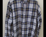 - G. H. Bass & Co Navy Blue, Gray & Yellow Plaid Flannel Shirt Size XL