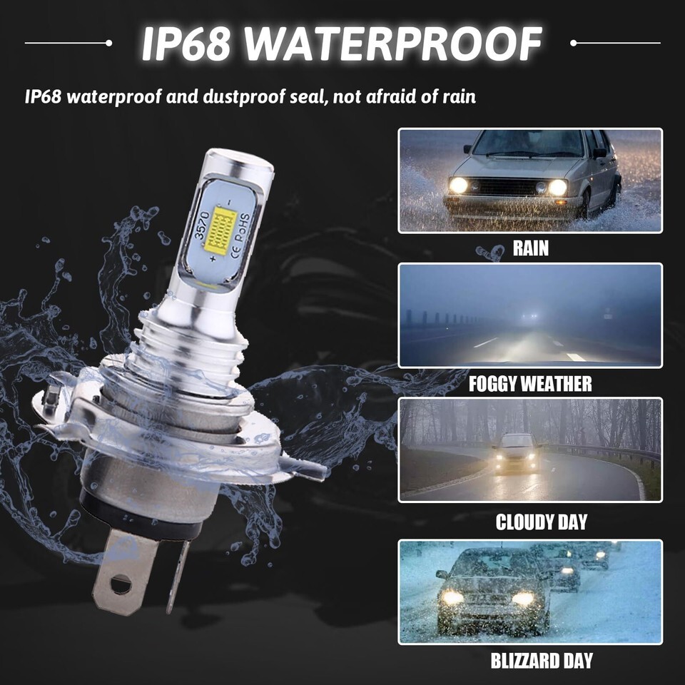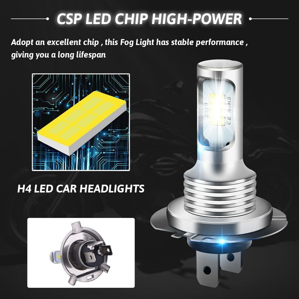- GKmow 2PCS H4 LED Fog Lights – 4000LM CREE, 3570 2SMD, White, Universal Fit