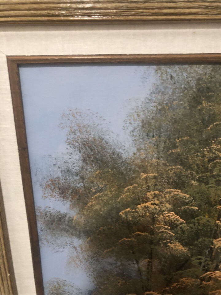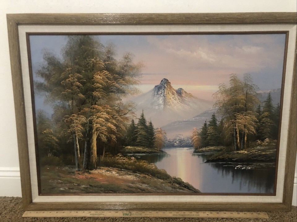- G Whitman Vintage Signed Original Oil Painting Landscape Mountain Lake Woods 41”