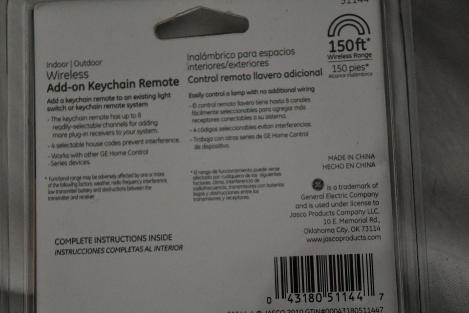 - GE 51144 Wireless Home Control Add On Keychain Smart Remote Plus New w5a 516a1