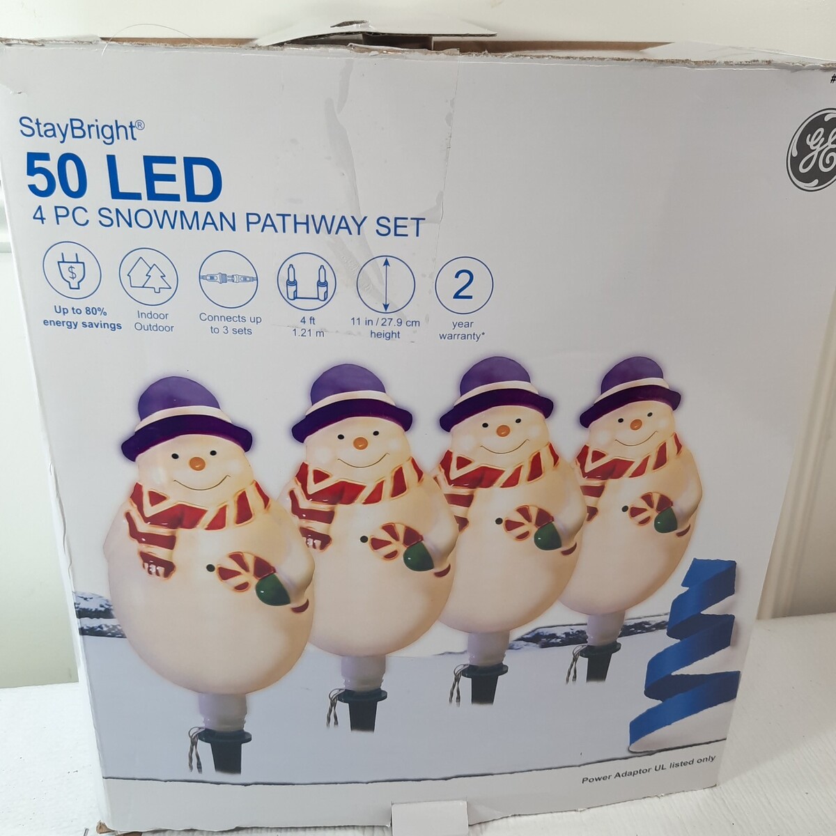 - GE StayBright Snowman Pathway light Markers x4 White Christmas blow mold 5280891