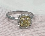 - GIA 1.20 TCW Cushion Light Yellow Halo Diamond Engagement Ring 14k White Gold