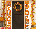 GIVE THANKS Hanging Banner Porch Sign Autumn Pumpkin Maple Leaf Backdrop Flag Fall Harvest Welcome Banner for Indoor Outdoor Wall Door Decoration Thanksgiving Party Decorations 72"X12"
