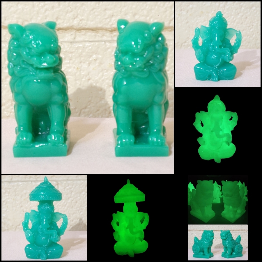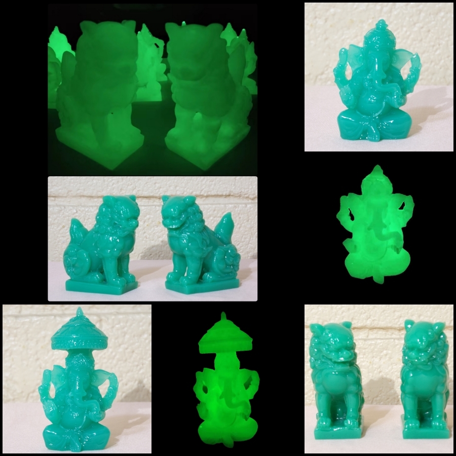 - GLOW in the DARK-Ganesha Parasol-Fu Foo Lion Dogs-Jade Green Color Resin Stone