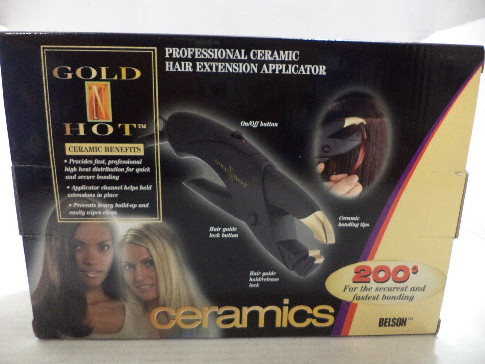 Gold N Hot Ceramic Hair Extension Applicator bonds hair extensions quickly and securely to natural hair in seconds!Features:-Ceramic Bonding Tips-Ergonomic Design -Comfortable Rubberized Finish-Hair Guide Hold/Release Lock-On/Off Switch-Power Indicator Light-9 ft. Cord with Hanging Ring-Prevents Heavy Build-Up and Easily Wipes Clean-Heats up 200F-One Year Limited Warranty from Manufacturer.