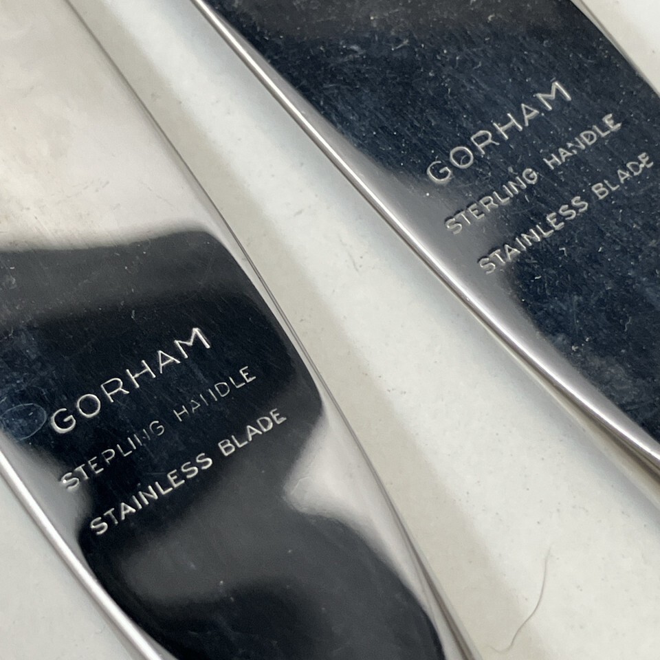 This lot of two (2) GORHAM Sterling 1956 CELESTE 9? Dinner Knives is a set of two elegant and collectible silver knives in the mid-century modern Celeste pattern. Made in the United States by renowned maker Gorham, these knives are crafted from sterling silver with an atomic starburst design, adding a touch of retro style to any table setting. Perfect for adding a vintage touch to your dining experience or for collectors of antique silverware.