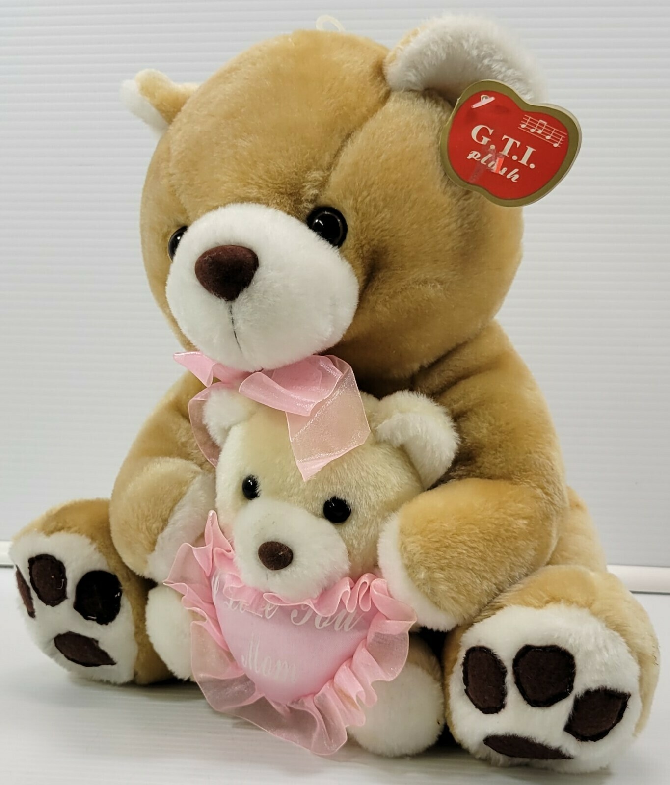 GTI Talking Plush Bears "Love You Mom" Heart with Tags 12" I Love You