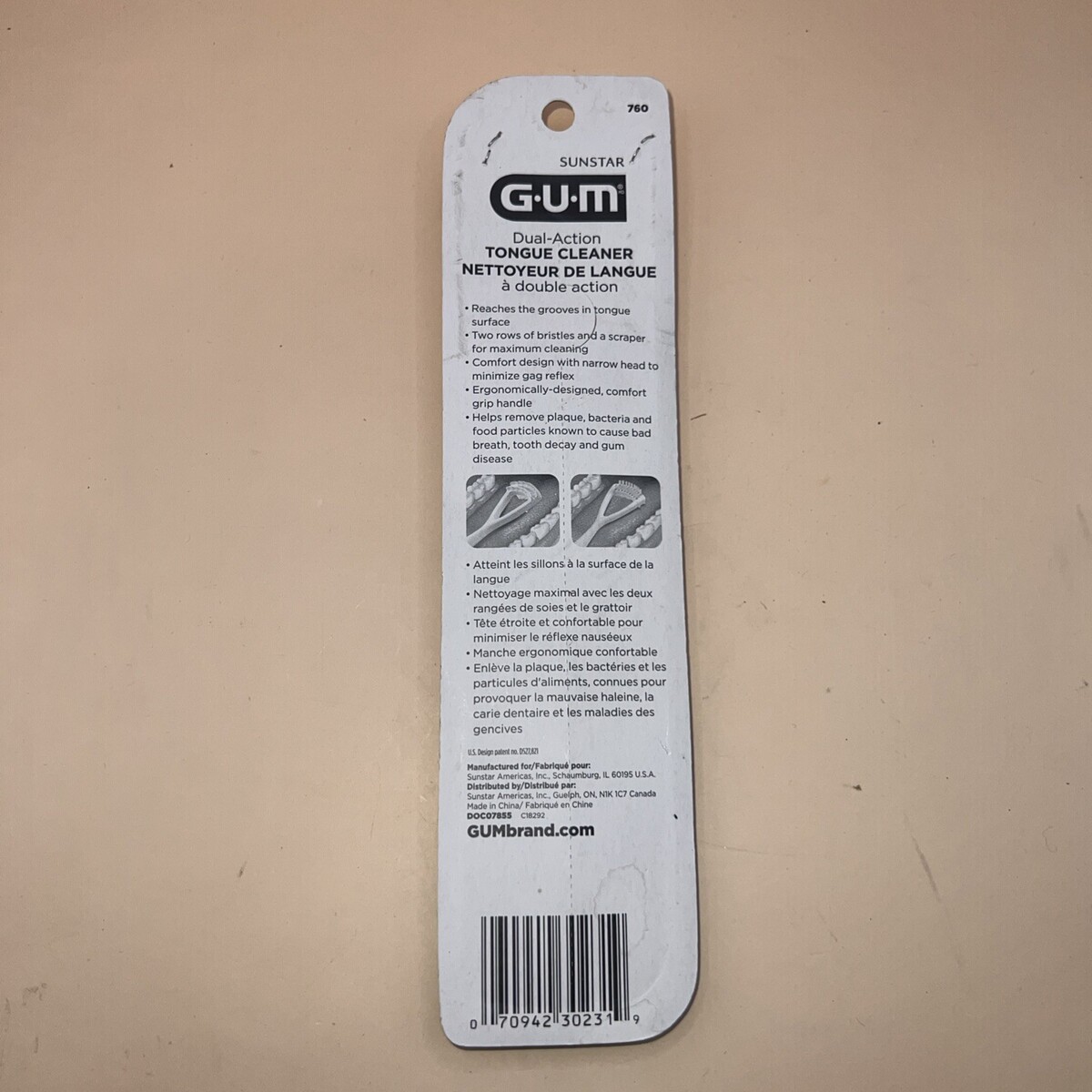 GUM Sunstar Tongue Cleaner Brush Scraper Combo (NEW SEALED) Blue. There are staples in the package for some reason.