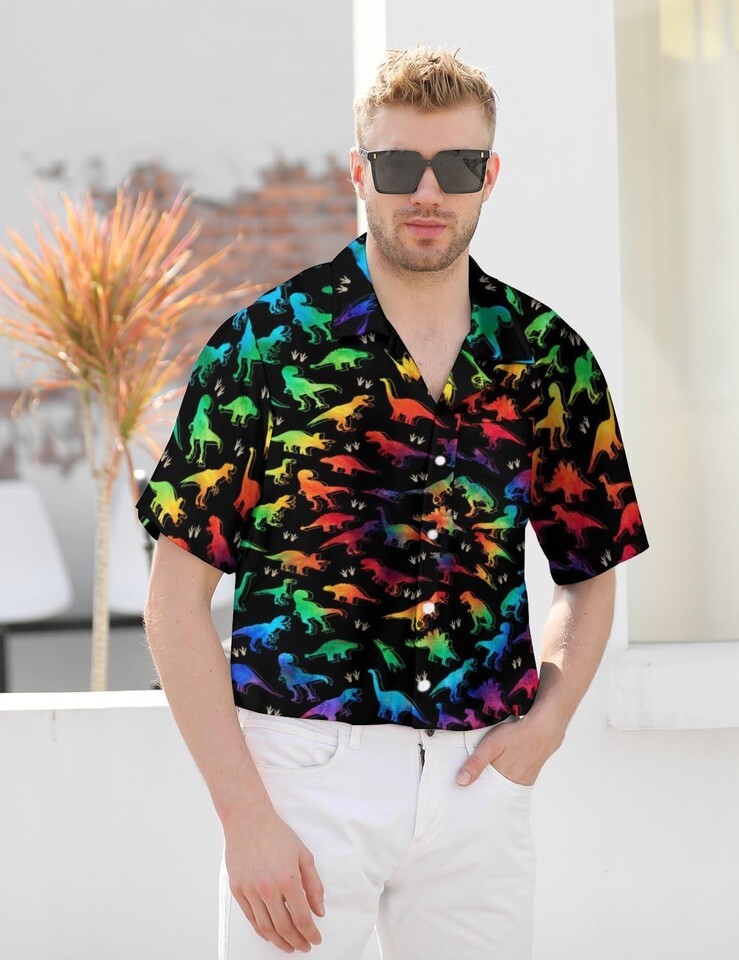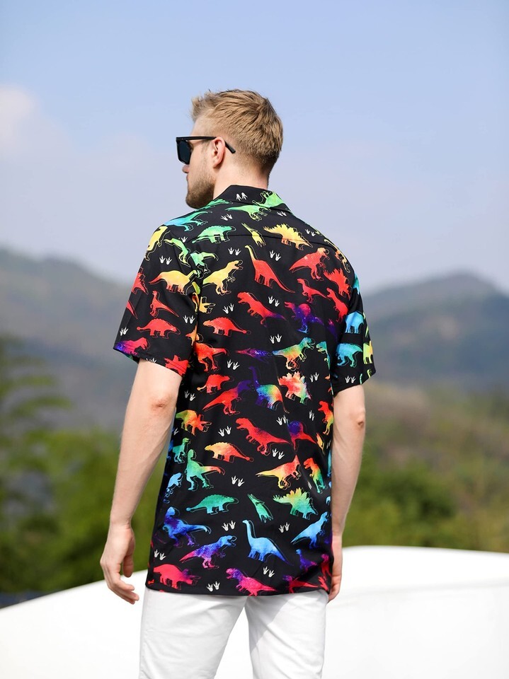 [Size selection from M to 3XL]Available in a variety of sizes. GADZILLE rainbow funky dinosaur hawaiian shirt fit well and have low elasticity. The cartoon shirts can modify the figure very well, and the shape and shape are excellent. If you prefer a looser fit, please choose the next size.