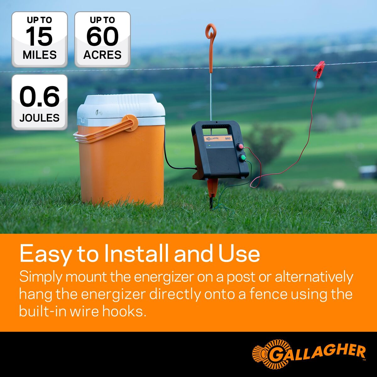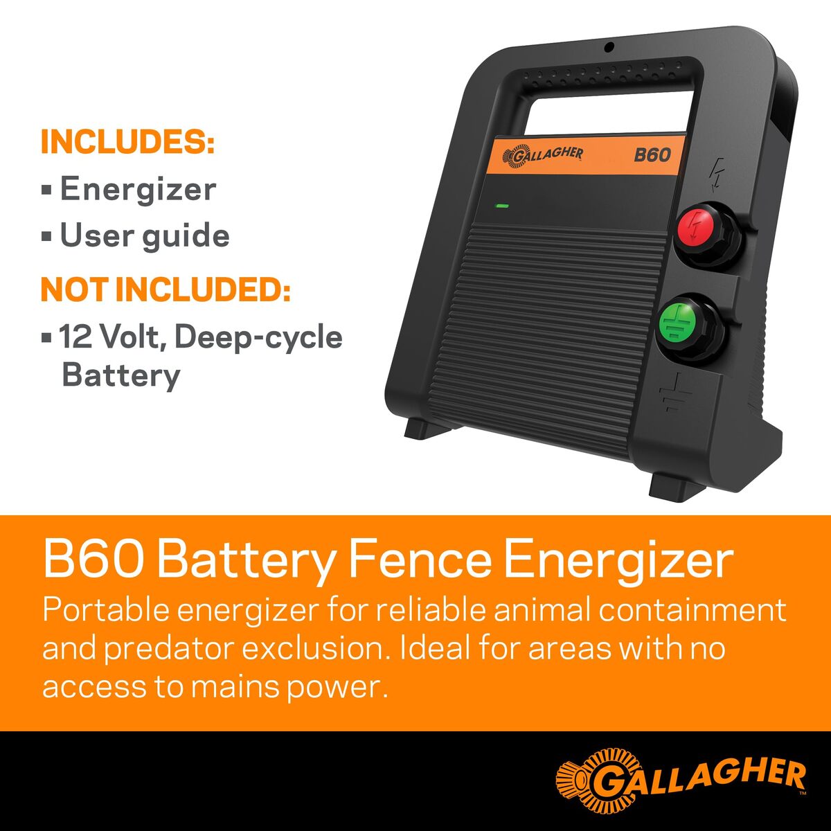 - Gallagher B60 Battery Powered Electric Fence Charger | 0.6 Joule 12v Battery Ene