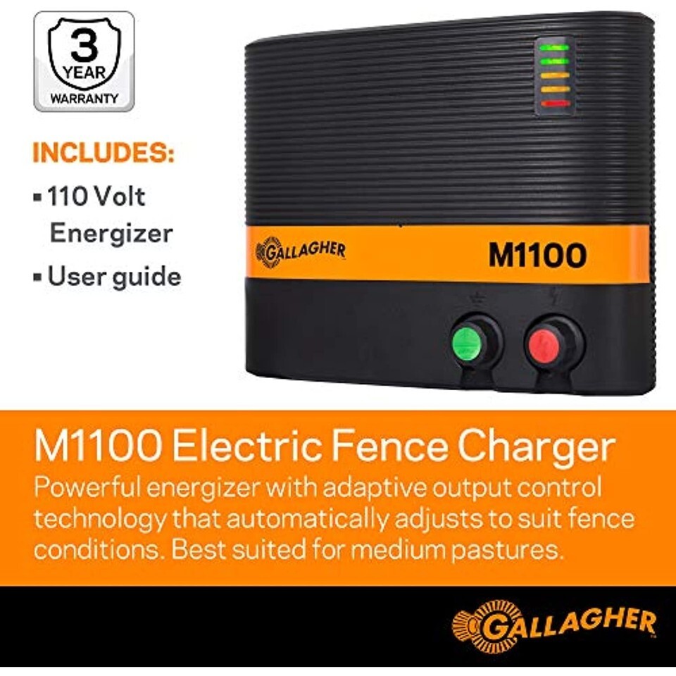 - Gallagher M1100 Electric Fence Charger | Powers Up to 110 Miles / 650 Acres of