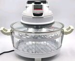 Introducing the Galloping Gourmet AX707 Perfection-Aire Convection Oven, a top-of-the-line kitchen appliance perfect for any home cook. This electric oven is designed with a broil cooking method and a power source of 120V 60Hz 1440W. The oven is made with high-quality glass and metal materials and includes components such as a rack, lid, glass bowl, and base. Includes everything shown in photos.