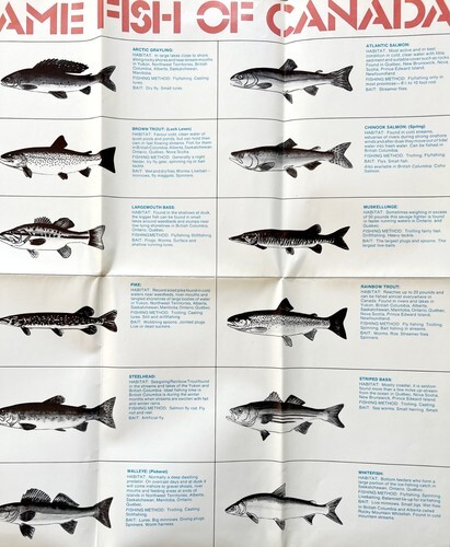 - Game Fish Of Canada Poster 1960s-80s Double Sided Fishing Landscape 22x35" E46