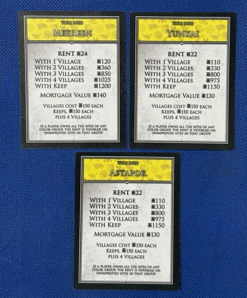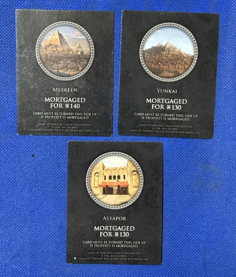 - GAME OF THRONES MONOPOLY 2018 Replacement Pieces: 3 Property Mortgage Deeds