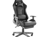 Enhance your gaming set up with the GameFitz Gaming Chair in Black. This chair features both a head and lumbar pillow for ultimate support while you play. The included foot rest has a unique folding feature that slide out for comfort and neatly hides away when you're done. The stylish pleather material creates a sleek and cutting-edge look, giving it the ultimate gamer aesthetic.