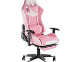Enhance your gaming set up with the GameFitz Gaming Chair in Pink and White. This chair features both a head and lumbar pillow for ultimate support while you play. The included foot rest has a unique folding feature that slide out for comfort and neatly hides away when you're done. The stylish pleather material creates a sleek and cutting-edge look, giving it the ultimate gamer aesthetic.