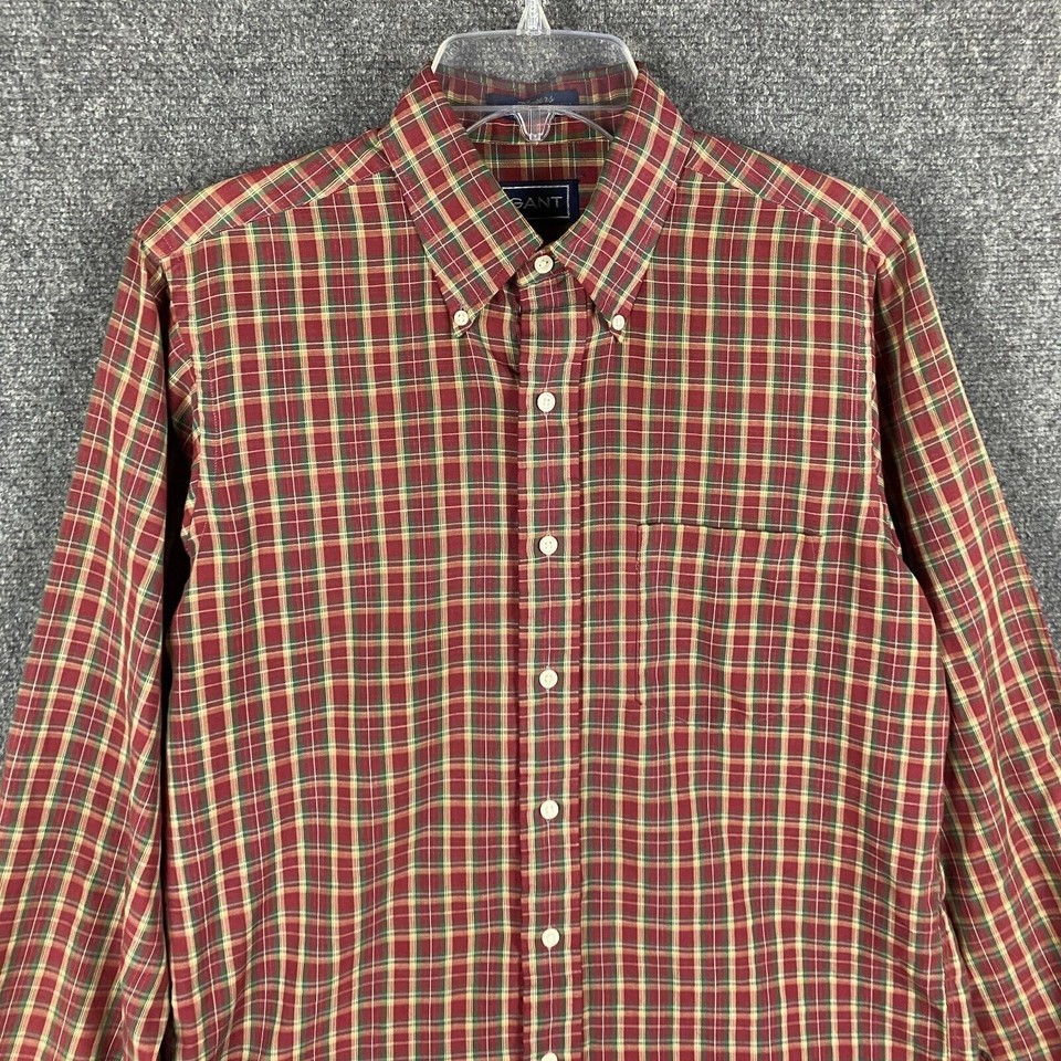 - Gant Button Down Shirt Men's 15.5 35 Long Sleeve Cotton Blend Plaid Adults