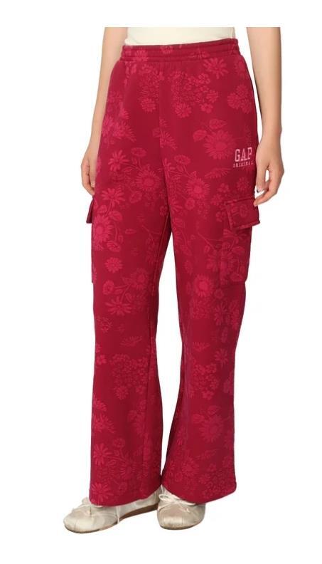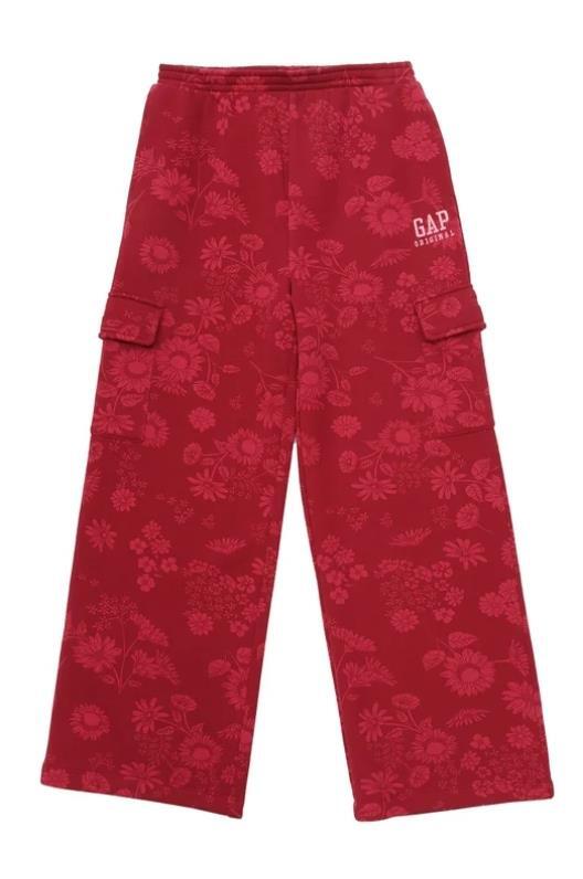 - Gap Boys Girls Sweatpants Red Floral Fleece Jogger Cargo Pockets Active Casual