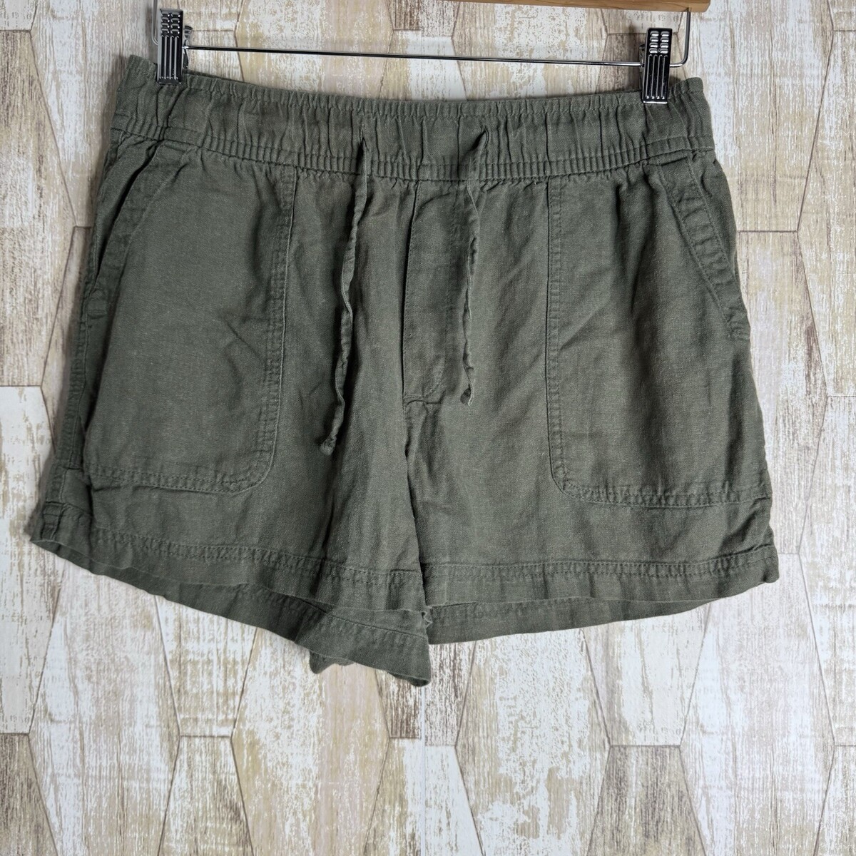 - Gap Shorts Womens Size M Green Linen Blend Lightweight Drawstring Waistband