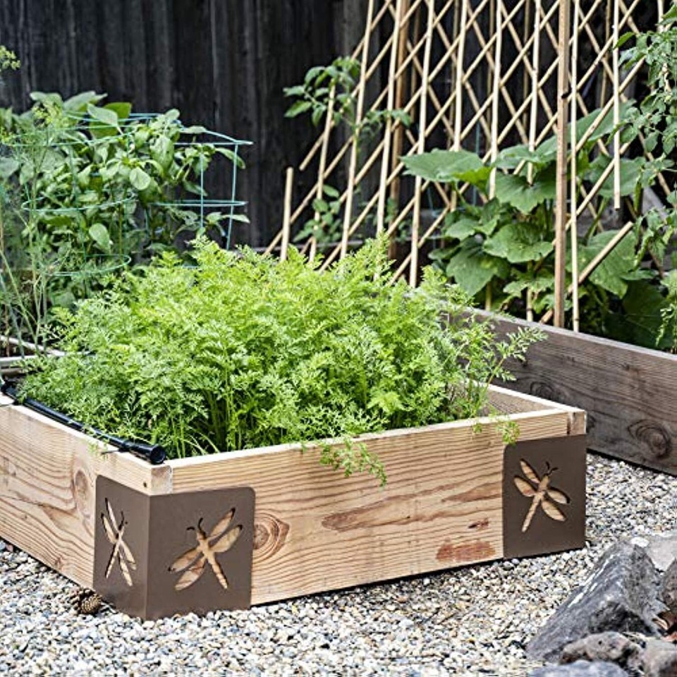 Garden Bloom 11023BL Bloom Dragonfly Instabrace Garden Flower Raised Bed Corners, 9.5", Brown