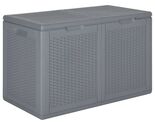 This Garden Storage Box is a classy fix for your outdoor storage needs, featuring a smart grey polypropylene rattan design that goes well with all sorts of outdoor settings. It's perfect for keeping your outdoor cushions, tools, and essentials safe and sound, making it a must-have for gardens, patios, and balconies.