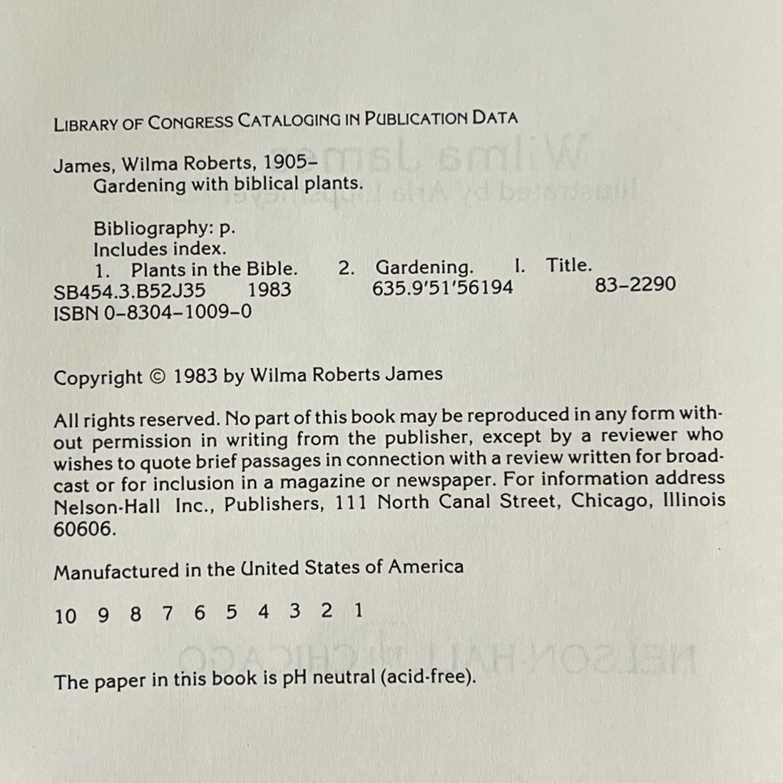 - Gardening with Biblical Plants Handbook for the Home Gardener Wilma James HC DJ