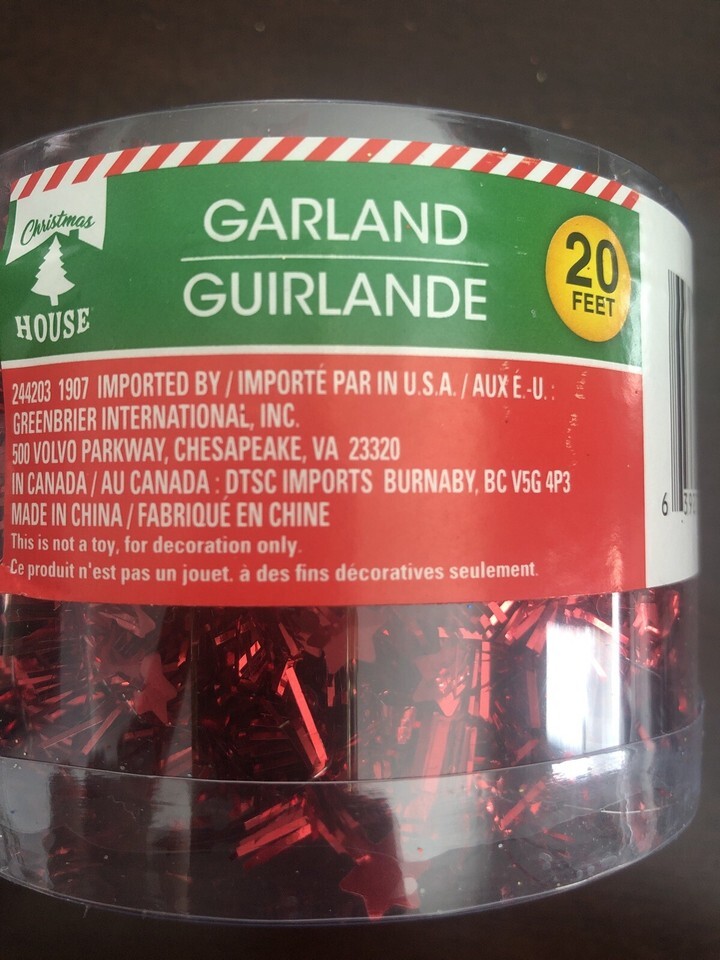 Garland 20 Feet Red. Condition is New. Shipped with USPS First Class Package.
