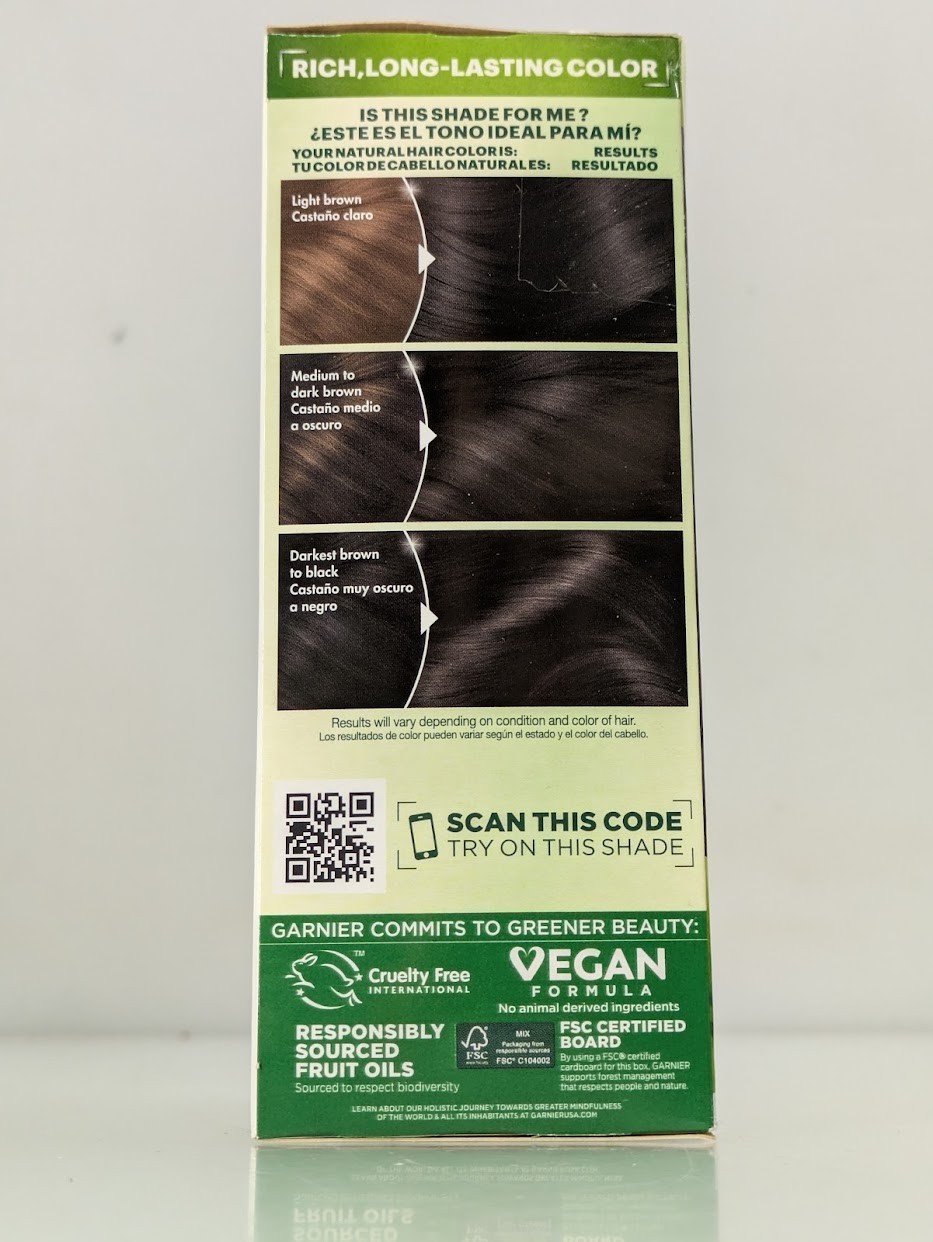 Garnier Nutrisse Ultra Creme Nourishing Permanent Hair Color nourishes as it colors for 2x shinier, silkier and nourished hair vs. uncolored, unwashed hair. Garnier Nutrisse permanent spft black hair dye comes with a fruit oil ampoule that you pour directly into the mix. Our nourishing after color conditioner is infused with five responsibly-sourced oils - avocado, olive, coconut, argan and shea. The new ColorBoost technology efficiently infuses intense dyes into the hair fiber for richer, radiant, and long-lasting color with 100 percent gray coverage. Our non-drip color Creme adapts to all hair textures for even color with beautiful highlights. Pure pigments give you rich, shiny, accurate long-lasting hair color from root to tip. Garnier Nutrisse is cruelty free and formulated without animal derived ingredients.