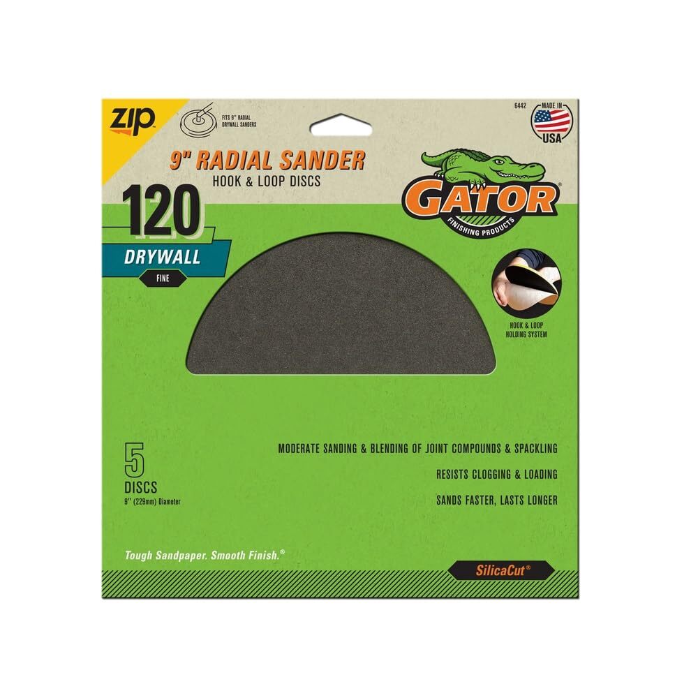 - Gator 9 in. CeraMax Grain Hook and Loop Drywall Sanding Disc 120 Grit Fine 5 pk