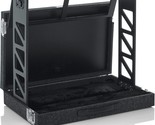 Gator has released a new line of rack style guitar stands, available in both 4 and 6 capacity models. Thestands combo as their own storage solution by folding flat into a compact carry case. When you are readyto use them, simply unfold, lock into place and drop in your guitar.The stand section is able to hold any variation of electric, acoustic, or bassguitars and conveniently folds down and locks into place with sleek, blackrecessed twist latches.The interior features black plush lining and includes elastic securebands to keep your guitars from shifting or falling out of the stand if itis bumped when in use.The exterior of the stands are constructed of sturdy Baltic birch wood covered in charcoal grey carpeting with feet on the back and bottom to prevent wear and extend the life of the product.