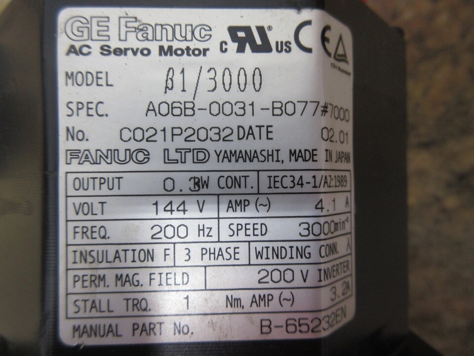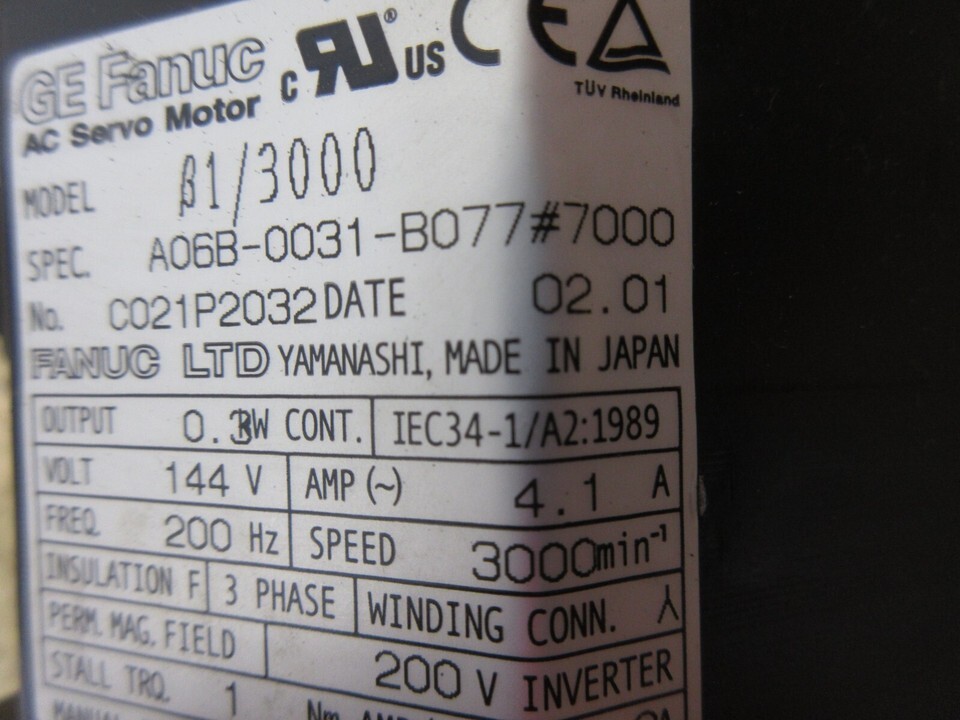 - GE FANUC AC SERVO MOTOR B1/3000 A06B-0031-B077 #7000 C021P2032 EACH 1