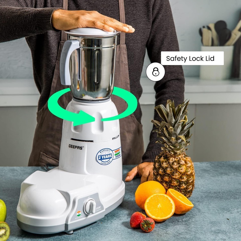 Experience powerful and efficient grinding with the Geepas 550W Mixer Grinder, perfect for both wet and dry applications. With Harmonic Grinding Technology, this 2-in-1 appliance is ideal for preparing Indian recipes like chutneys, dosa batter, spices, and more?plus smoothies, sauces, and purees.