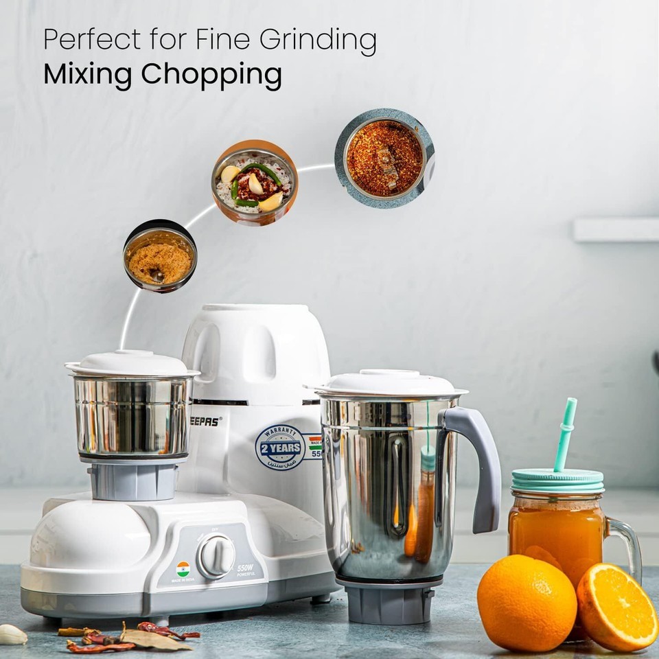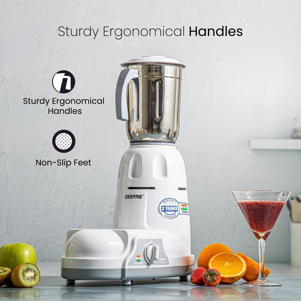 - Geepas 550W Mixer Grinder – 2 Jars | Indian Wet & Dry Grinding | 3 Speed Control