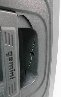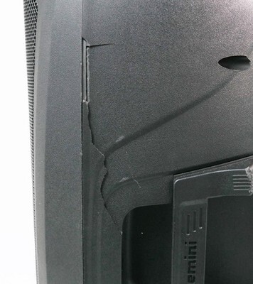 Description: Includes Speaker, Power Cable, Remote Control. Cracks in the body of the unit on right and left sides by the handles.