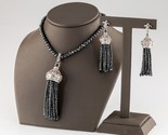 - Gems en Vogue Marcasite Bead Necklace with Silver Tassle Enhancer and Earrings